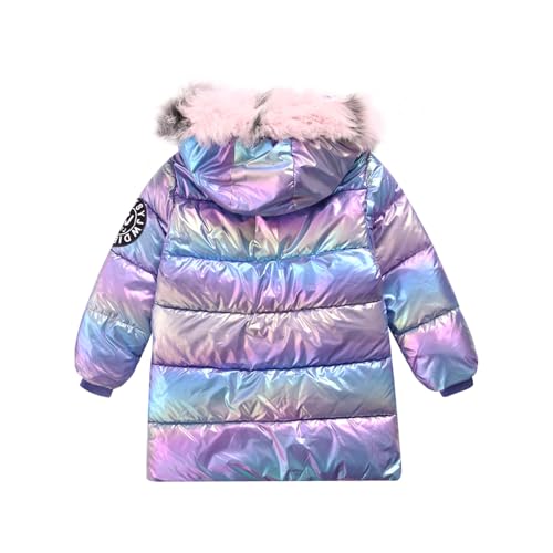 Kids Girls Metallic Hooded Puffer Jacket Long Coat Winter Warm Casual Padded Outerwear with Pockets 6
