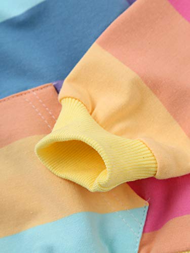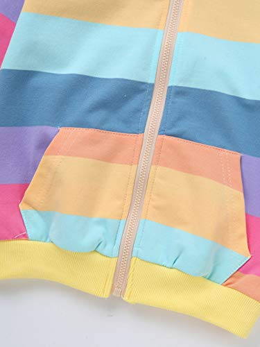 Youth Girls Cotton Jacket Long Sleeve Rainbow Stripe Hooded Zipper Cardigan Coat with Pocket Casual Outwear 6