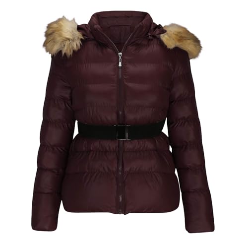 XUNRYAN Teen Girls Winter Warm Down Coat Cropped Puffer Jackets Faux-Fur Hooded Anorak Parka Thicken Ski Jackets Belted 6