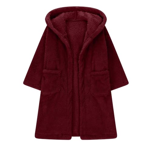 More information about Girls Fuzzy Pea Coats Fleece Faux Fur Long Hooded Jacket Open Front Windbreaker Overcoat with Pockets 3-12 Years