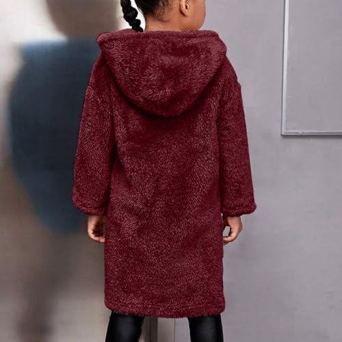 Girls Fuzzy Pea Coats Fleece Faux Fur Long Hooded Jacket Open Front Windbreaker Overcoat with Pockets 3-12 Years 7