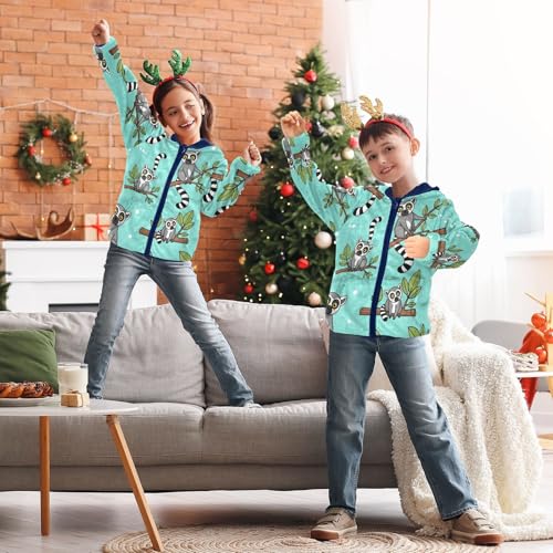 Lemurs on Branches with Leaves Toddler Fleece Jacket Girl Boys Hooded Fleece Jacket Coat Warm Outwear Zip-up 3-10T 4