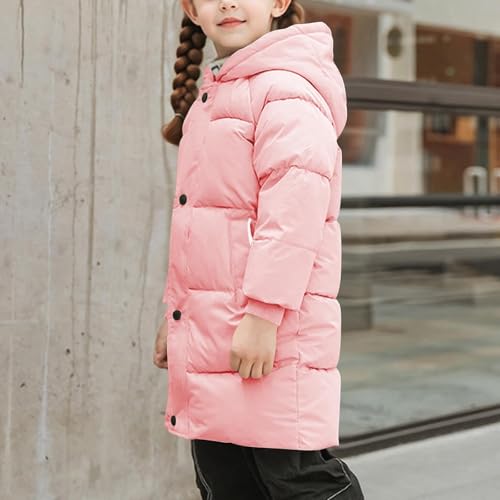 Long Puffer Jacket for Girls Boys Casual Fashion Down Jackets Winter Plain Thickened Warm Hooded Coat with Pockets for Kids 6