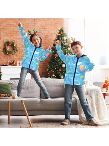 Blue Ocean Whale Fish Girls Fleece Jacket Girls Fall Jacket Boys Coats Zip Up Hoodie Children Outerwear 2-10T 5