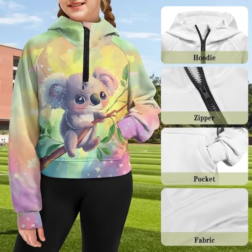Children Half Zip Raglan Sweatshirt for Girls 5-14Y Winter Crop Hoodies with Front Pockets Comfoy Breathable 4