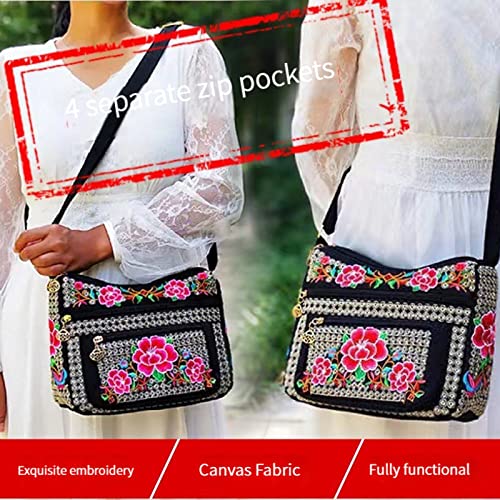 More information about Women's canvas vintage handicraft embroidery cross bag, women's multi pocket purse small shoulder bag handbag