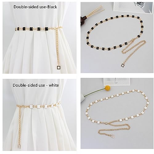Black and White Waist chain for Women Adjustable Fashionable Metal Belt Dress Sweater Waist Closing Decorative Belt 2