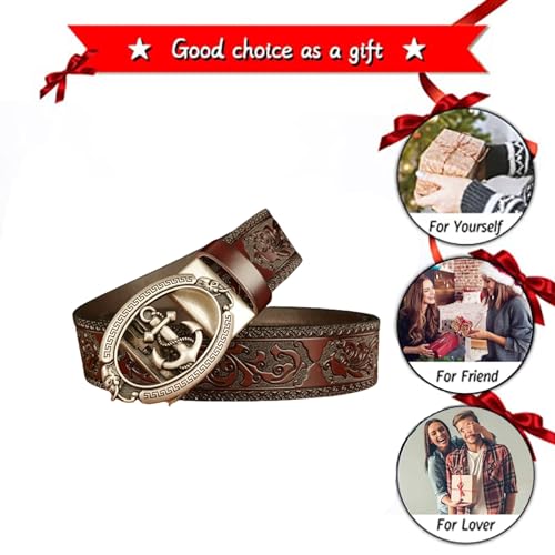 More information about Men's Embossed Leather Ratchet Belt Strap-Silver Automatic Buckle with Engraved Elephant Head Hollow Anchor and Chain