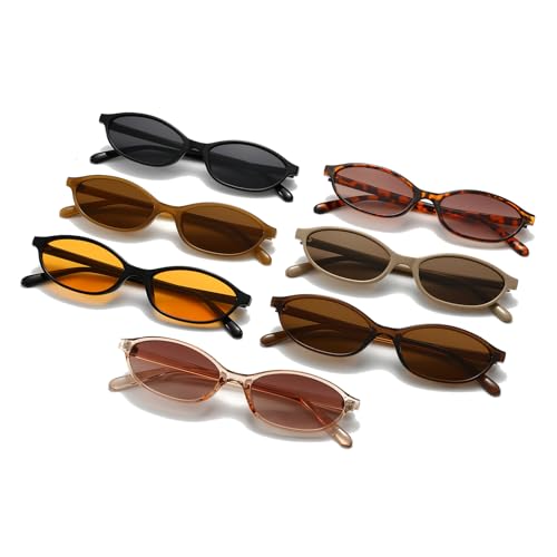 LJCZKA Retro Oval Cat Eye Sunglasses for Women 90s Trendy Small Frame Sunnies Vintage Cateye y2k Shades UV400 Protection 7