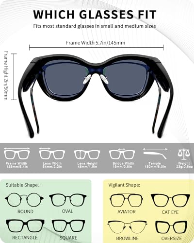 • [FIT OVER] Designed for a comfortable fit over eyeglasses, our sunglasses provide coverage and protection without compromising style. Seamlessly combine fashion with functionality, allowing you to wear both your eyeglasses and sunglasses simultaneously.