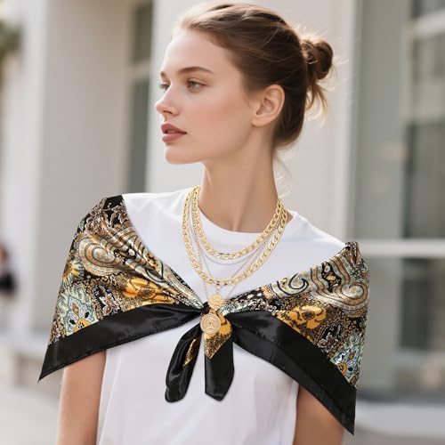 CICOCI 3PCS Head Scarf For Women 35" Satin Large Square Women Bandana Headband With Neacklace Set 6
