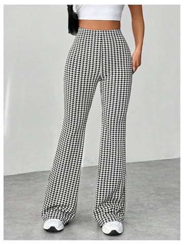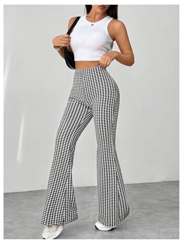 • Design: Women's flared leg pants are feature with houndstooth print, high waist, elastic waist, flared leg