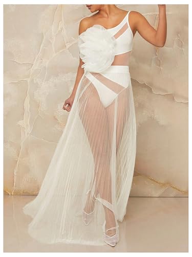 OYOANGLE Women's Sheer Mesh Maxi Flowy Skirt High Waist Vacation Concert Bridal A Line Long Skirts 1