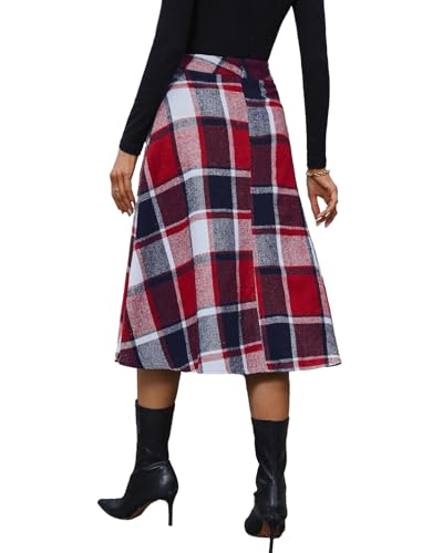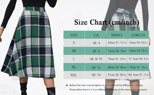 Plaid Skirts for Women High Waist Wool Skirts A-Line Tartan Midi Skirts 4