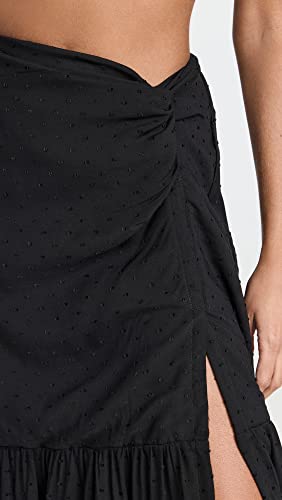 • Flocked swiss dot pattern, Partial elastic waistband, Thigh-high slit at front, Front twist detail
