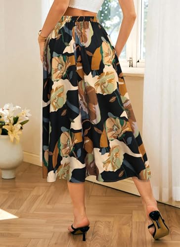 POPZONE Women's Midi Skirts Boho Fall Summer Flowy Elastic High Waist Floral Below The Knee Long Skirts for Women 1
