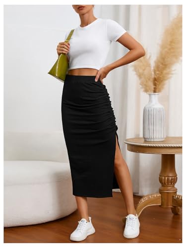 SOLY HUX Women's High Waisted Ruched Split Skirt Bodycon Pencil Going Out Long Skirts 1