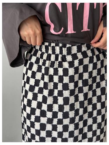 More information about Floerns Women's Elastic Waist Plaid Skirt Checker Slit Hem Straight Long Skirt