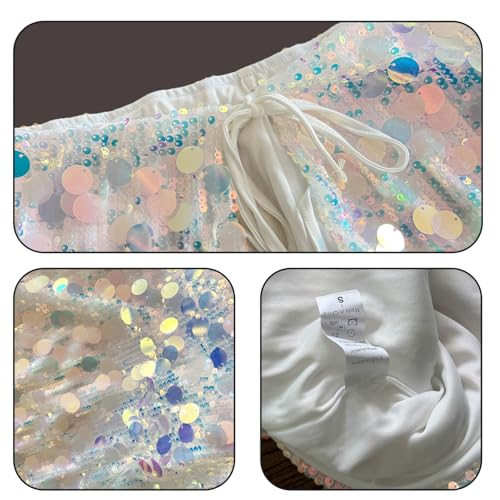 • Versatile Tie-Up Design & Sparkle Glam:Rock the glitter skirt with adjustable side tie-up details! This low waist sequin skirt lets you customize the fit