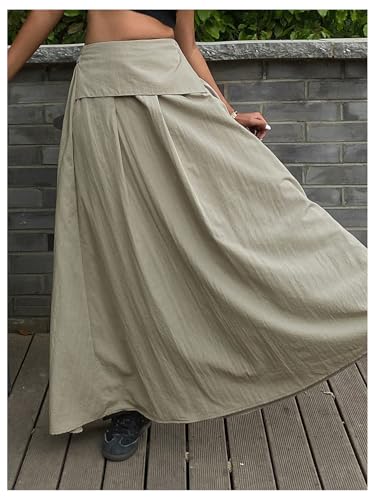 HOT ! Milumia Women's High Waisted Flared A Line Maxi Skirt Elegant Loose Fit Long Skirts