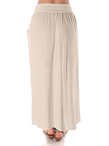 DFF Shop Women's High Waist Shirring Maxi Skirt with Pockets (Size: S - 5X) 4
