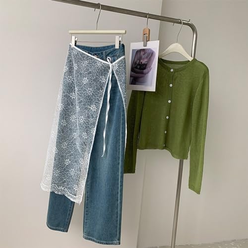 Women Korean Sheer Mesh Layering Long Skirt Hip Scarf with Tie Up Hollow Out Flower Lace Hip Covering Apron Skirts 6