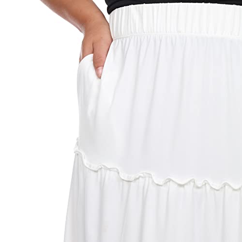 HOT ! white mark Women's Plus Size High Waist Tiered Maxi Skirt with Pockets