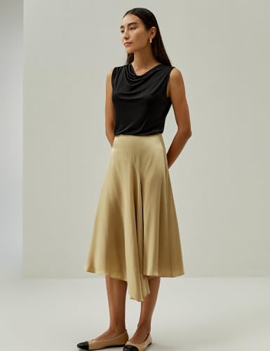 LilySilk Silk Skirt for Women Side-Seam Zipper Flared Skirt Type Calf Length Asymmetrical Hem for Work and Casual 1