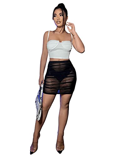 HOT ! SweatyRocks Women's Sheer Mesh Elastic Waist Ruched Bodycon Mini Skirt Party Skirts