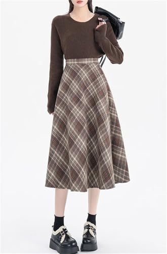 More information about SANGTREE Women's Long Plaid Wool Skirt High Waist A-Line Tartan Flared Skirts