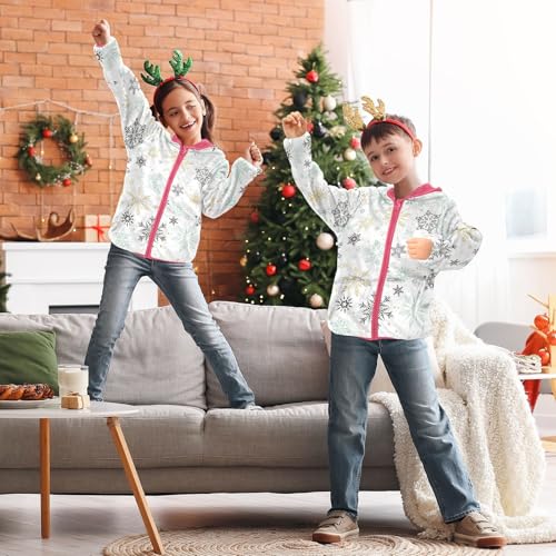 OTVEE Christmas Blue Gold Snowflakes Kids Hoodie Jacket Fall Spring Full Zip Warm Outwear Coat 6