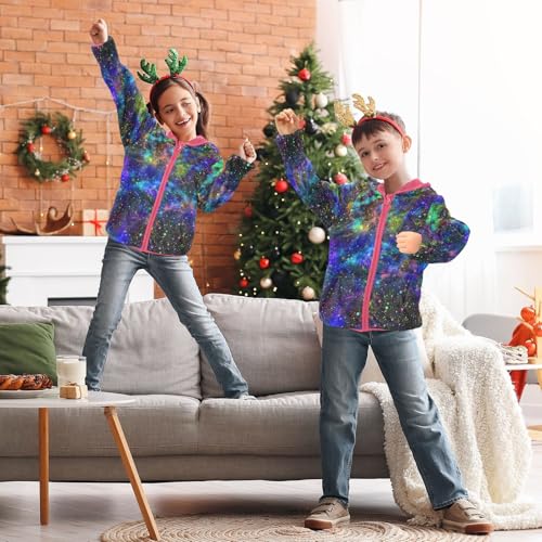 OTVEE Colorful Universe Nebula Starry Kids Hoodie Jacket Fall Spring Full Zip Warm Outwear Coat 5