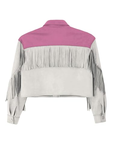 easyforever Kids Girls Jacket Coat Faux Suede Tassel Long Sleeve Shiny Star Rhinestone Color Block Outwear Streetwear 5