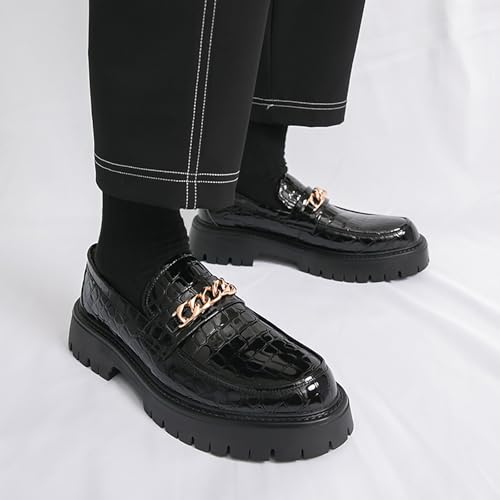 Men's Leather Printed Platform Penny Loafers Fashion Round Toe Non-Slip Lug Sole Slip-On Business Casual Dress Shoes for Office Prom Party 6