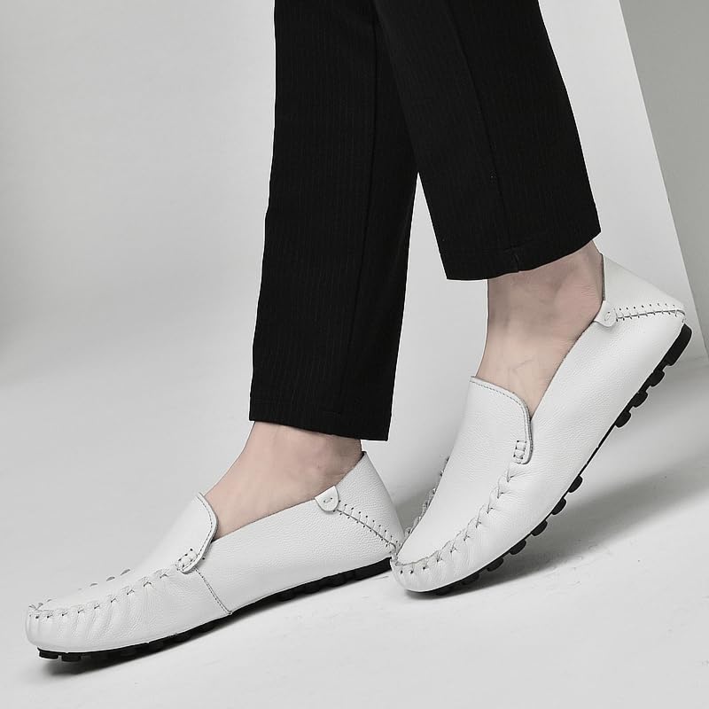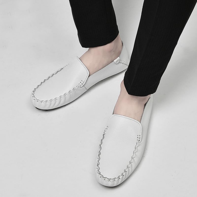 HOT ! Hand-Sewn Cowhide Loafer (White, Adult, Men, 9, Numeric, US Footwear Size System, Medium)