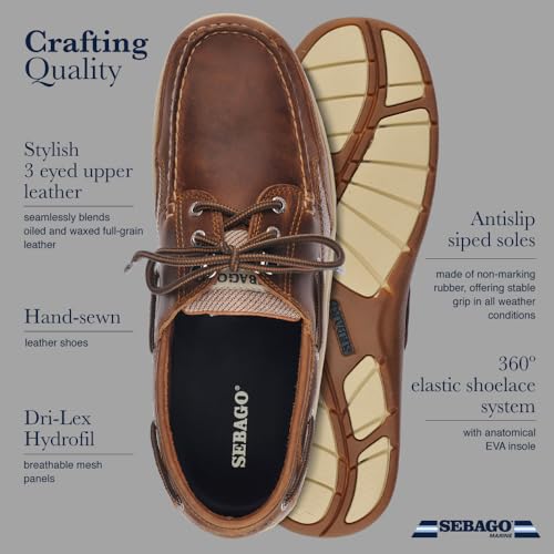 More information about Sebago Clovehitch II FGL Waxed Boat Shoes - Leather Moccasins for Men with Breathable Mesh Panels, Anatomical EVA Midsoles, and Slip-Resistant Outsoles, Brown Cinnamon - 13 Regular