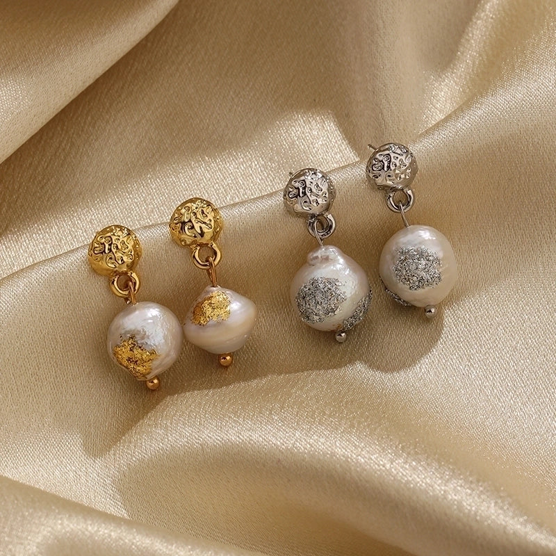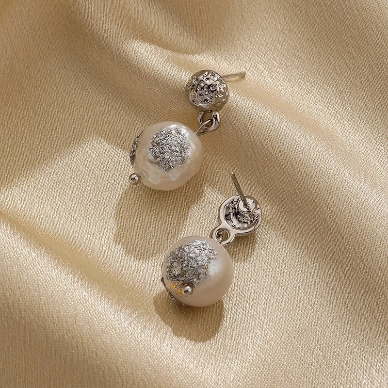 HOT ! 1 Pair Classical Retro Round Plating Inlay Copper Freshwater Pearl 18k Gold Plated Silver Plated Drop Earrings