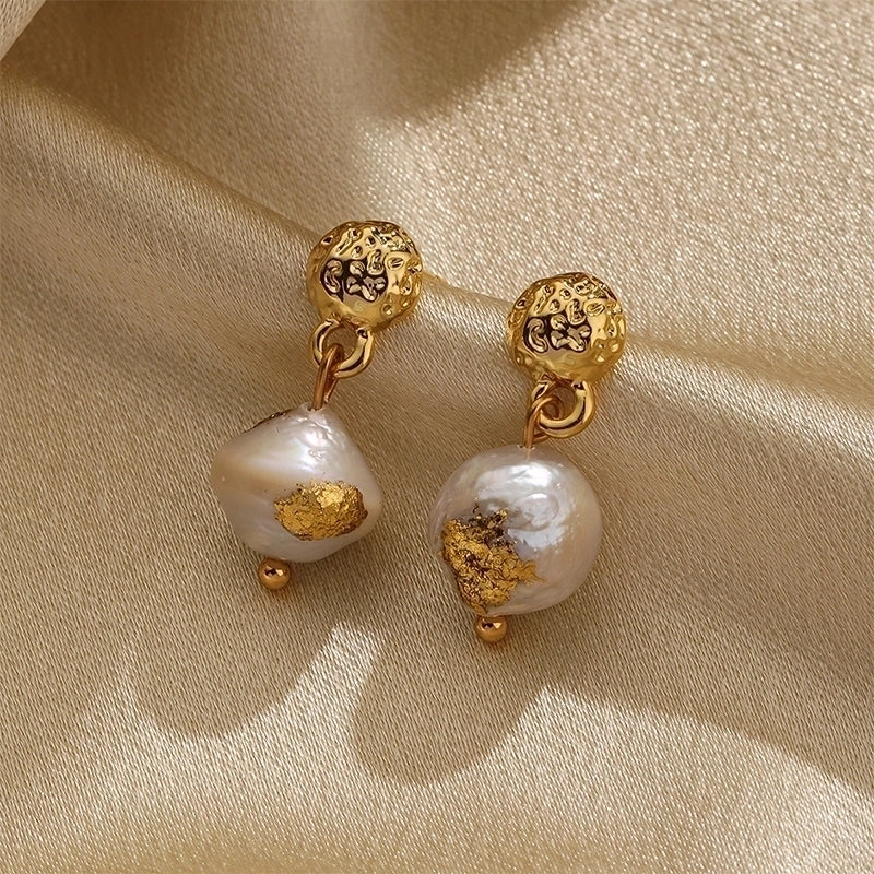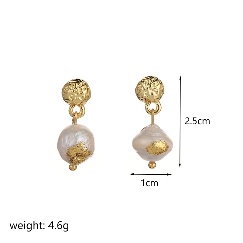 More information about 1 Pair Classical Retro Round Plating Inlay Copper Freshwater Pearl 18k Gold Plated Silver Plated Drop Earrings