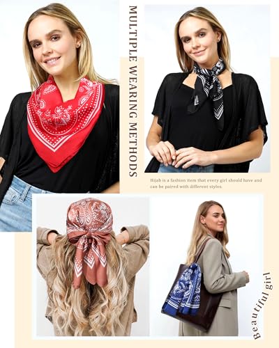 4PCS Satin Square Head Scarf 27.5” Satin Head Scarves for Women Hair Kerchief Bandanas Sleeping Head Wraps 6