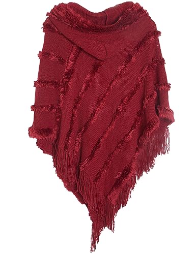 Aivtalk Poncho Hooded Shawl for Women Fringed Hem Cape Knitted Elegant Warm Wrap Tassel Sweater 5