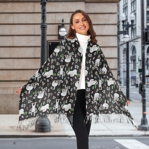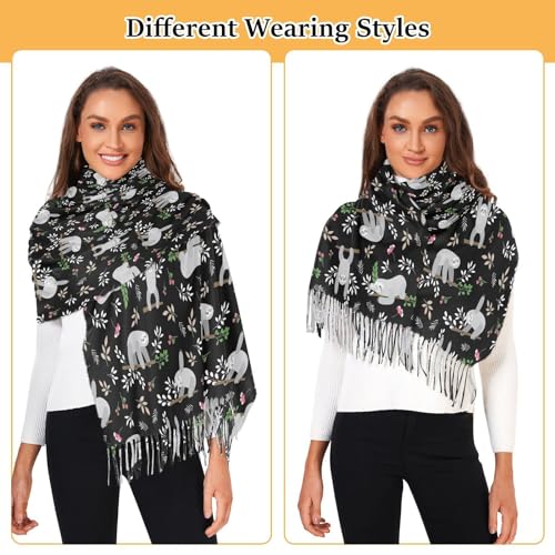 • 【Design Feature】Simple and fashion single sided Funny Sloths Hanging on Tree printing can make you stand out in a crowd. Wearing this scarf in cold fall winter or spring days would be good, tassels decorated at the edge, making this scarf more cute and vivid while wearing.