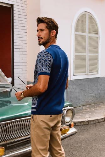 • 【Feature】: Mens 70s shirts, featuring a stylish 70s contrast color scheme. Short sleeve, cuban collar,button down polo is crafted with a knitted design, complete with ribbed hems and cuffs for added sophistication. The high stretchy, wrinkle-resistant fabric ensures a classic fit that remains comfortable throughout the day.