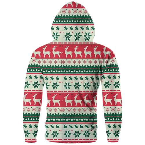 HOT ! Men's Christmas Zip Up Hoodies Funny Drawstring Pullover Hoodie with Pocket