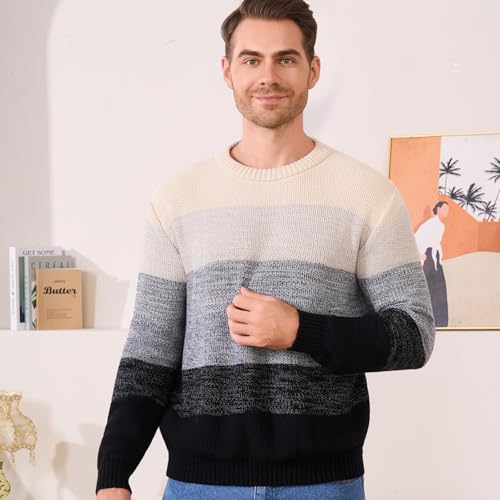 • Lightweight and Warm: This mens lightweight comfy crew-neck striped color block pullover sweater is not too thick for mild temperatures while keeps warm at cool weather at office, home or outdoor. mens sweaters and pullover is for fathers, brothers, friends, and colleagues,Great for Thanks giving Day, Christmas, New Year, Birthday…