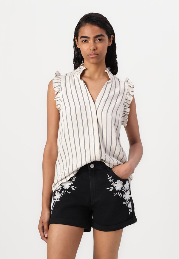 SLFVIVA RUFFLE STRIPED - Button-down blouse - sandshell 1