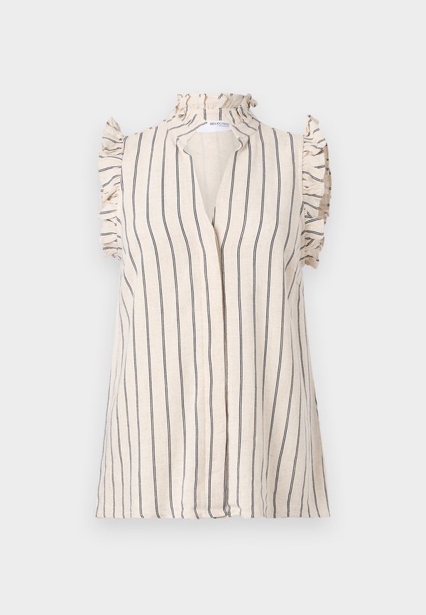 HOT ! SLFVIVA RUFFLE STRIPED - Button-down blouse - sandshell