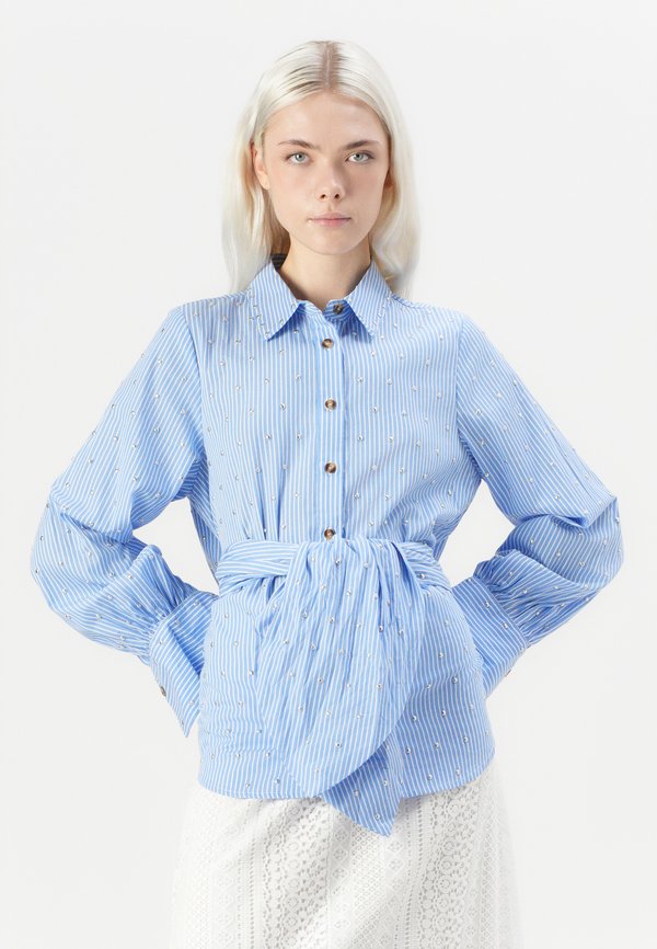 BLUE STRIPE TIE BACK SHIRT - Button-down blouse 1
