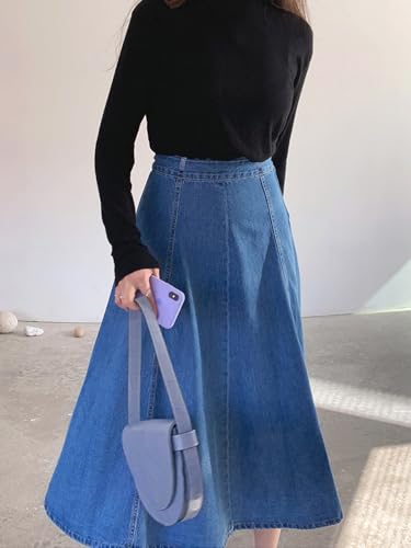 More information about Womens Long Denim High Waist Floor Length Flared Skirt Blue Jean Skirts for Women Midi Skirt