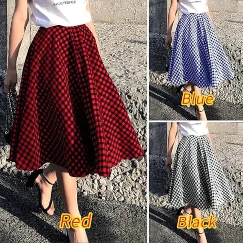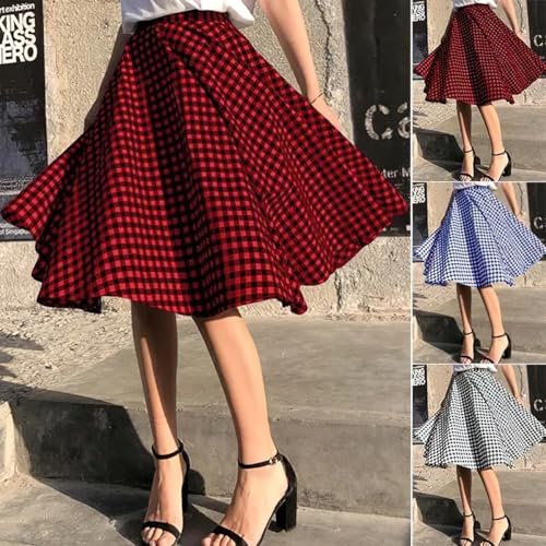 • Vintage plaid skirts for women midi length, featuring classic plaid checked printed pattern, flattering aline silhouette to hide thick thigh, elegant and feminine to wear.