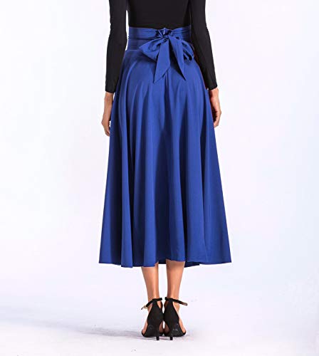 More information about Aivtalk Women High Waist Long Skirt with Slit Pockets Bow Tie Pleated Maxi Skirt